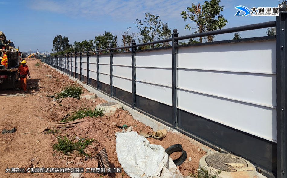 深圳市大通建材裝配式鋼結構烤漆圍擋C款是一款符合深圳市政府統一要求的建筑工地圍擋