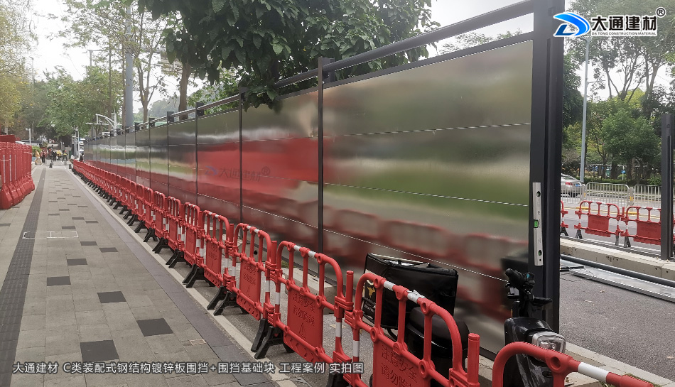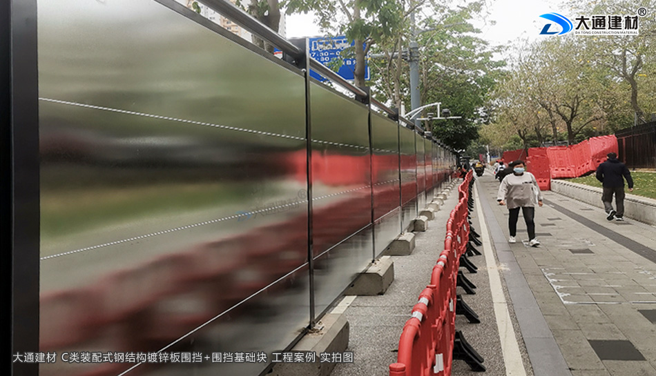 深圳市羅湖區黃貝街道項目工程使用的是深圳市大通建材提供的C類鍍鋅鋼結構圍擋+圍擋基礎塊,由大通建材公司專業團隊生產-銷售-配送-安裝等服務