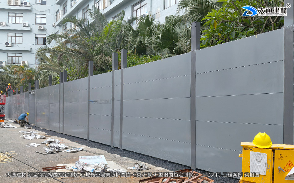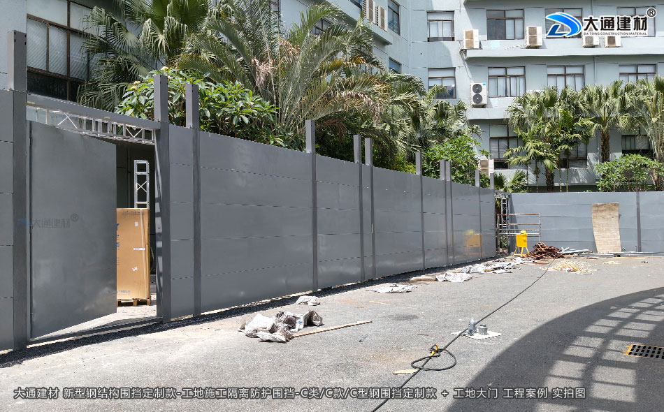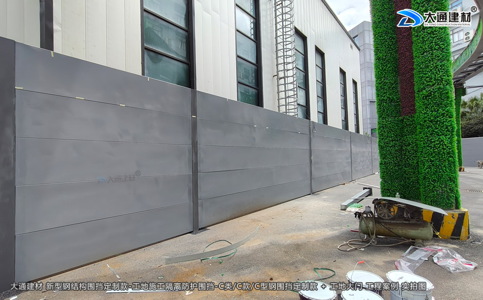 深圳市大通建材C類/C款/C型鋼圍擋生產廠家,大通圍擋可按工地實際情況及需求定制化生產,下面展示的是定制款C類/C款/C型鋼圍擋安裝在深圳龍崗比亞迪改造工程的部分實拍圖