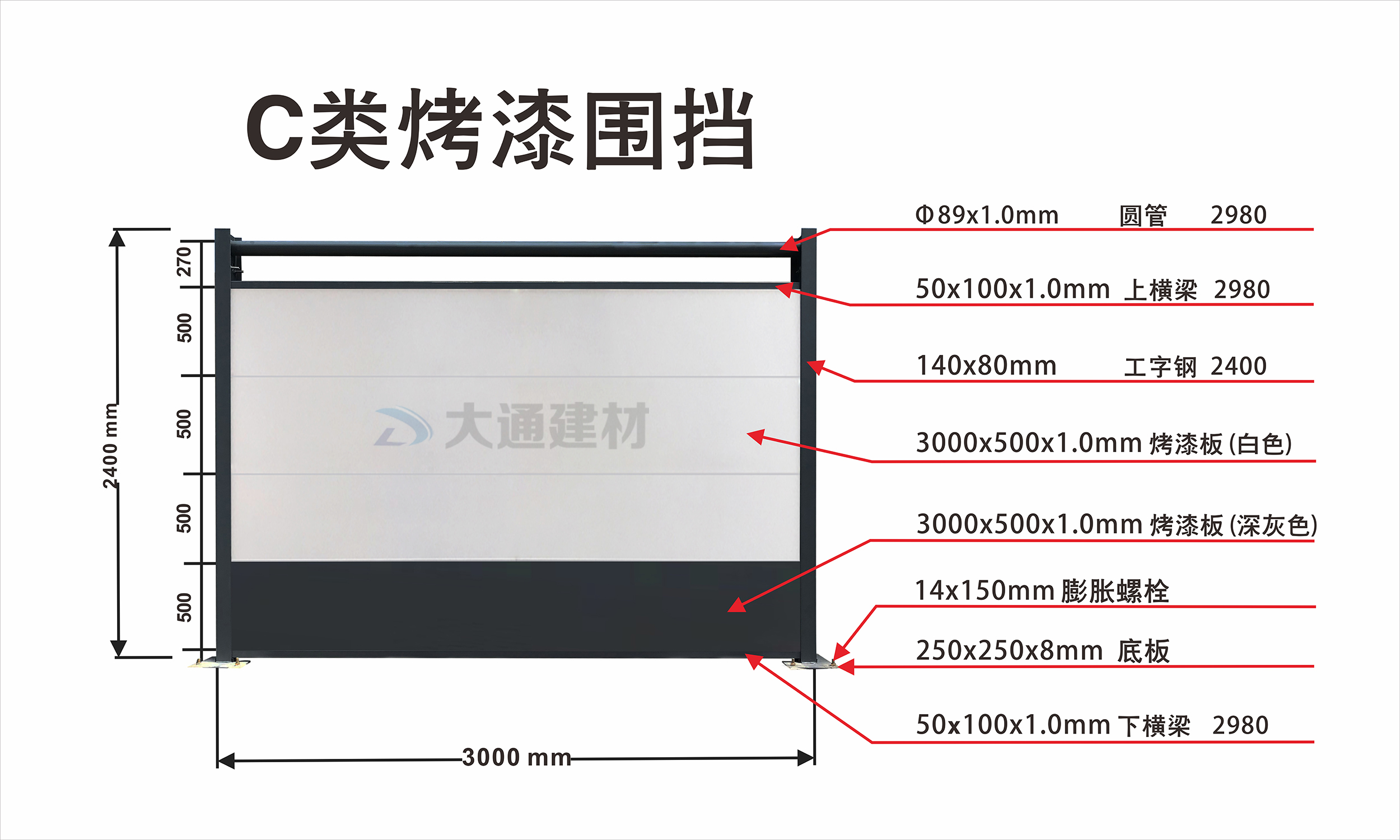 深圳市大通建材C類烤漆圍擋產(chǎn)品特點: