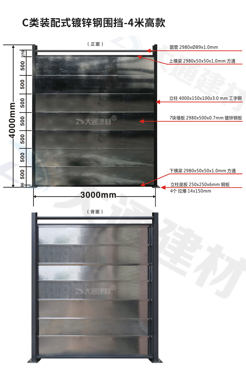 若想了解更多“大通建材 C類(lèi)鍍鋅鋼圍擋定制款”規(guī)格與價(jià)格等詳情 請(qǐng)致電13826562448梁經(jīng)理