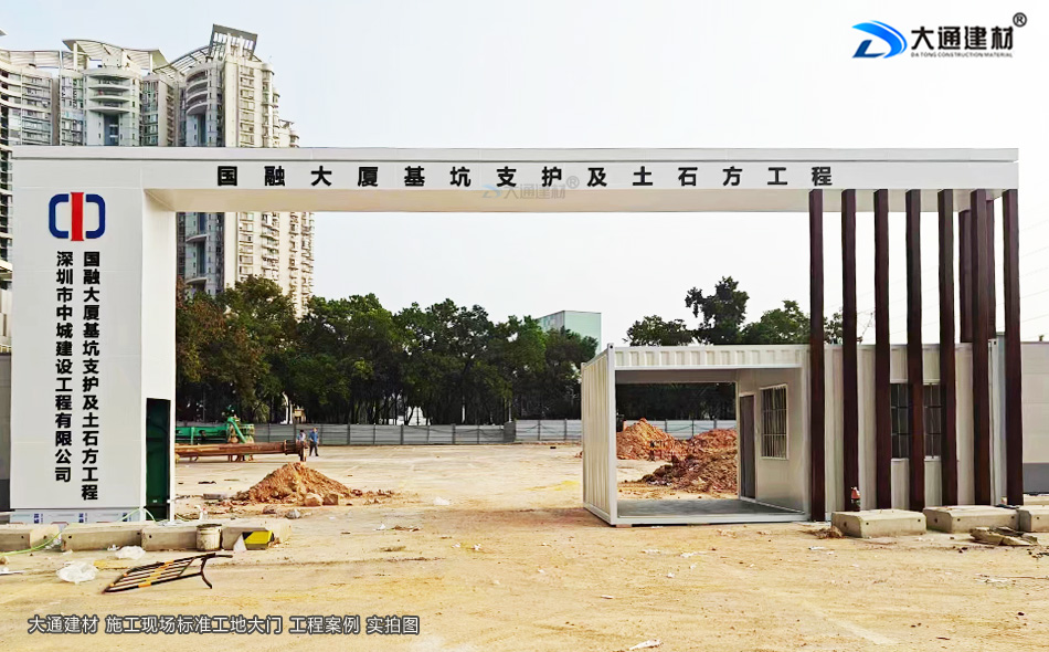 深圳市中城建設(shè)工程有限公司承建的深圳國融大廈基坑支護(hù)及土石方工程選用了深圳市大通建材標(biāo)準(zhǔn)工地大門及鋼結(jié)構(gòu)圍擋