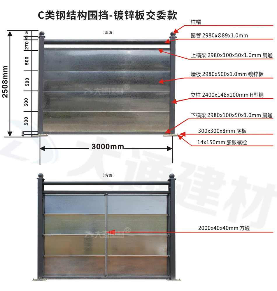 深圳大通建材 C類鍍鋅板鋼結構圍擋-交委款 產品特點