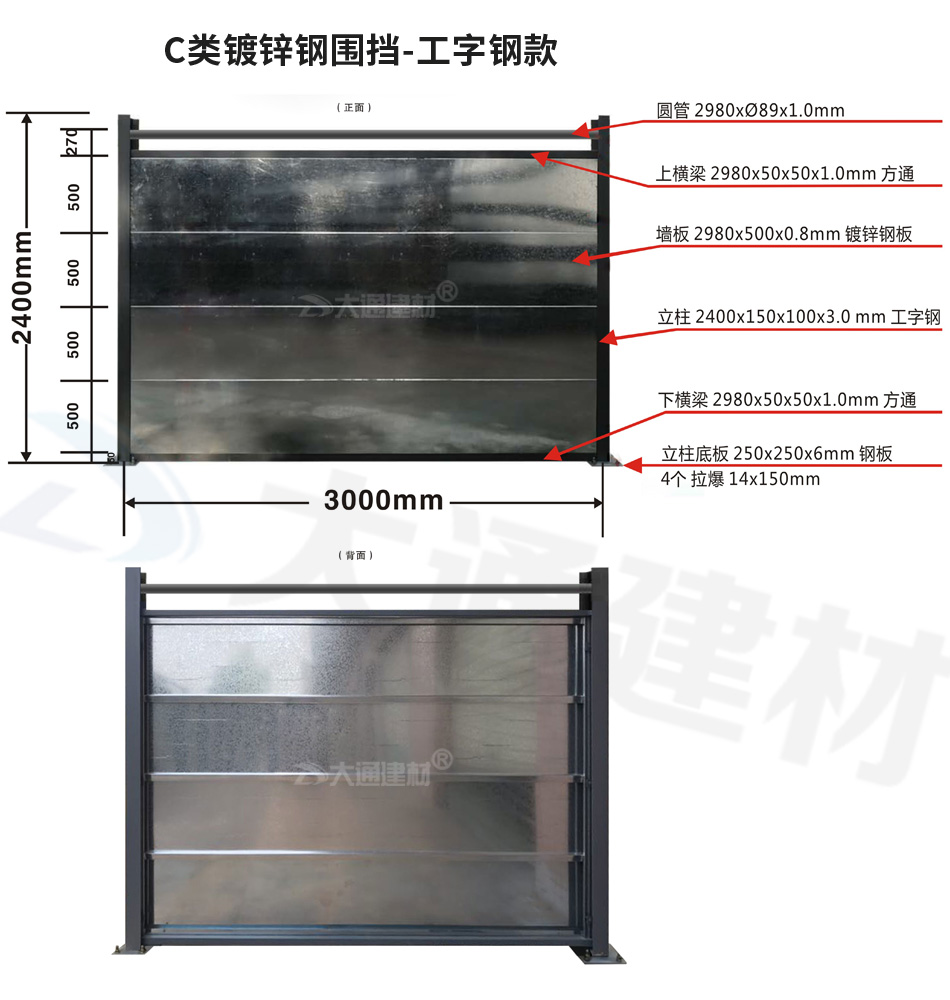 深圳大通建材 C類鍍鋅板圍擋-工字鋼款 安裝說明